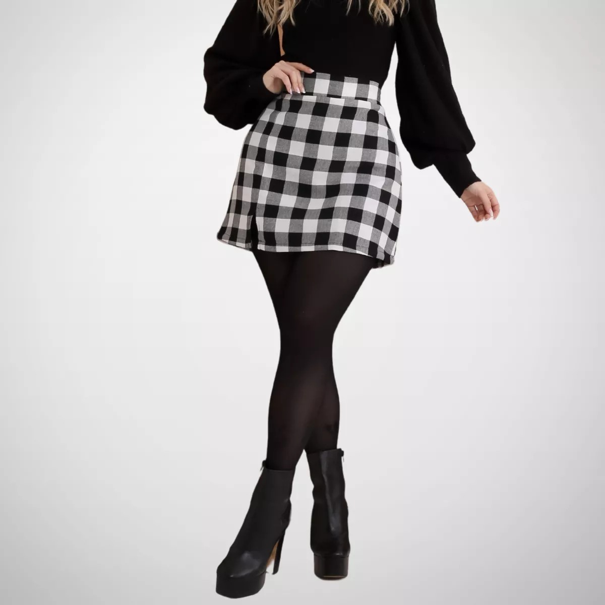 A Saia Xadrez com Fenda Beamar é aquela peça que transforma o look com um toque de ousadia e sofisticação. Com estampa xadrez clássica e modelagem estruturada, ela valoriza a silhueta com o cós largo que segura a barriguinha e ainda permite o uso de cintos. A fenda frontal sutil traz sensualidade na medida certa, sem abrir mão do conforto e da mobilidade.